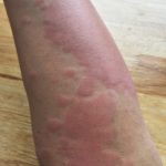 Urticaria is itchy, red fluid filled blisters that appear on the skin, as a result of histamine being released by the body. This can happen as an allergic reaction for example to pollen or a food stuff you’ve eaten. It can also occur if you’ve been bitten by an insect. Once the allergen has gone or the insect bite has gone down the hives go away. Eczema is an itchy skin condition but looks very different to hives. It also is not normally triggered by allergic reactions.